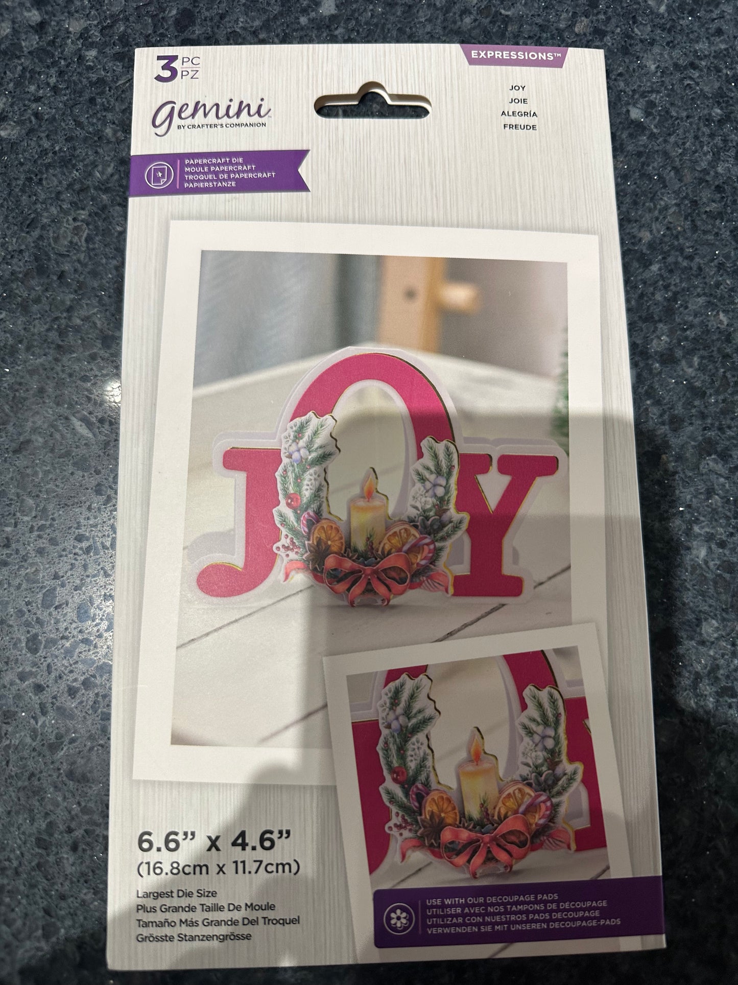 Make a word card reading "Joy". Decorate as you wish. Measures 6.6" x 4.6".