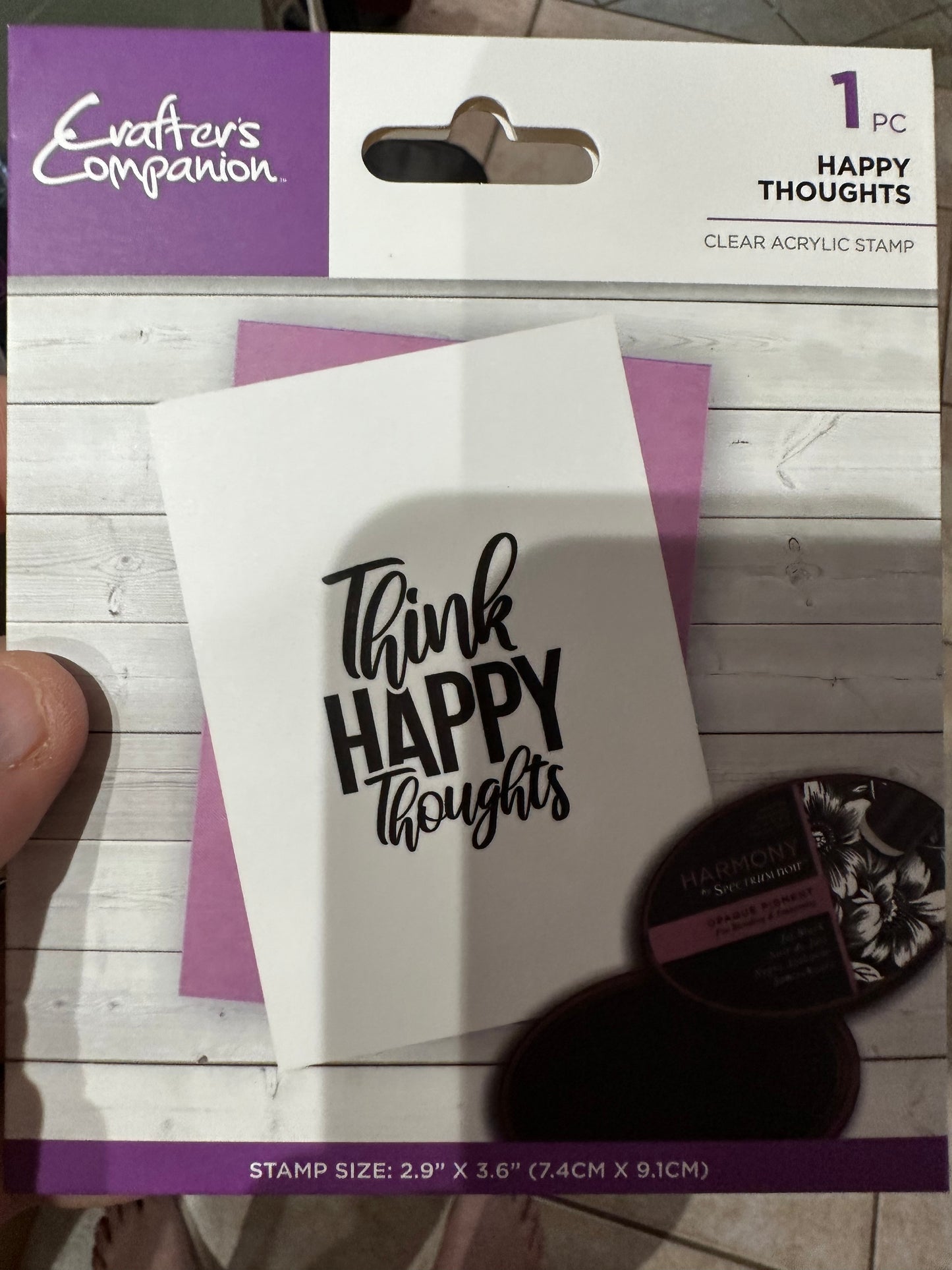 Stamped sentiment reads "Think Happy Thoughts".