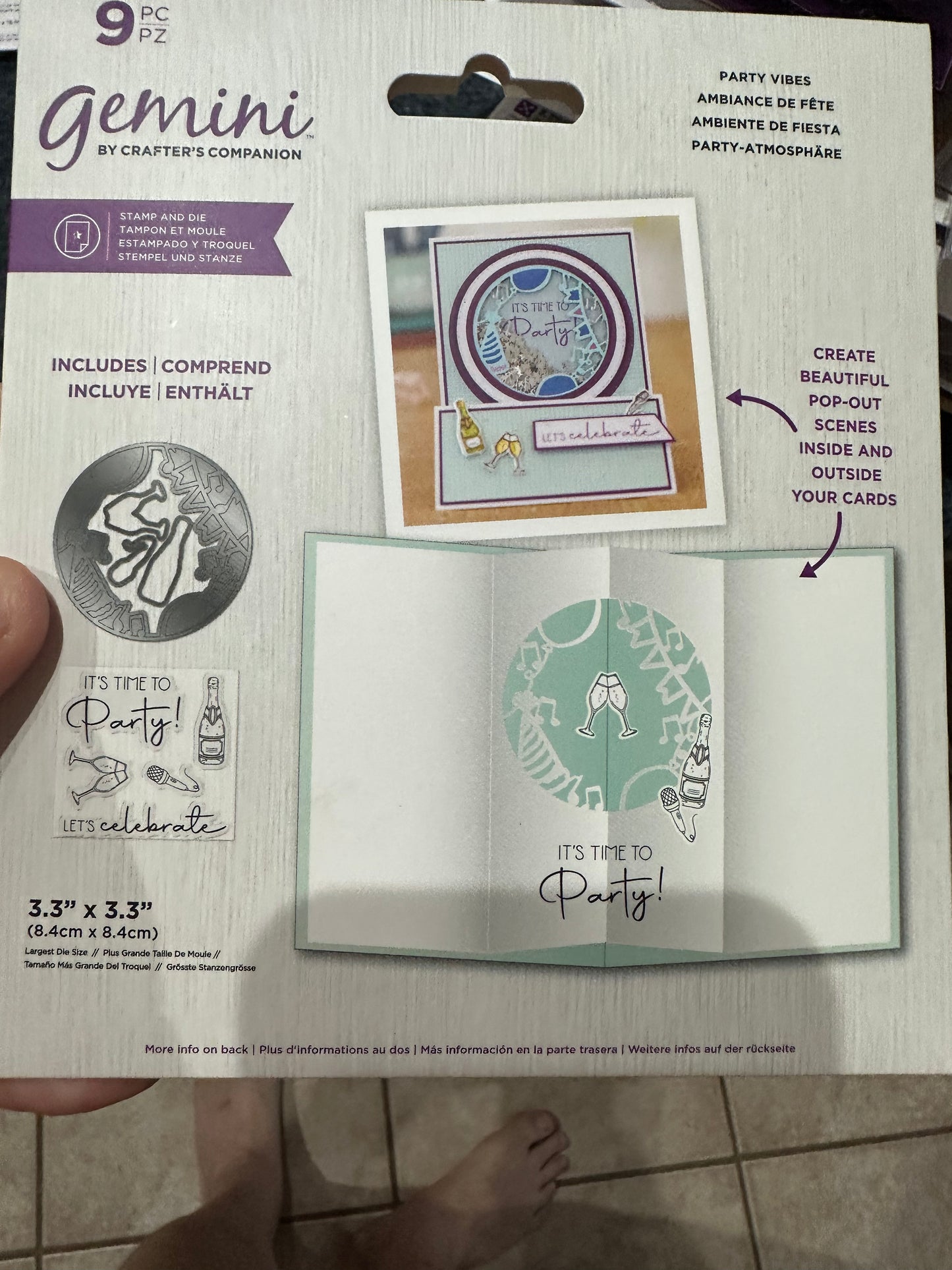 This pop-in or pop-up die is a fun party scene. Use the coordinating stamps of champagne flutes, a microphone, a champagne bottle, and sentiments "It's time to" and "Let's celebrate".