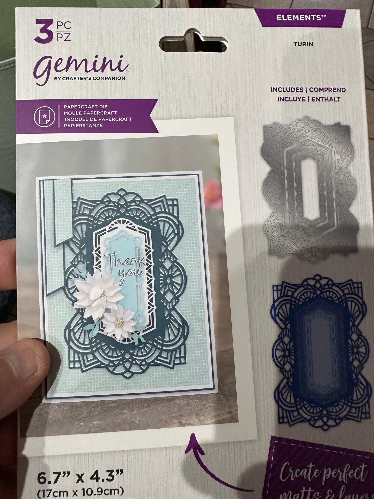 Lovely designs are abound in this 3-die set. Rectangular in shape, you can make layered cards, shaker cards, or apertures.